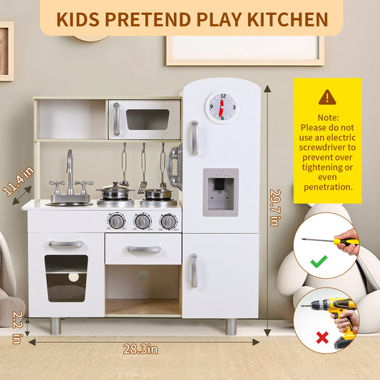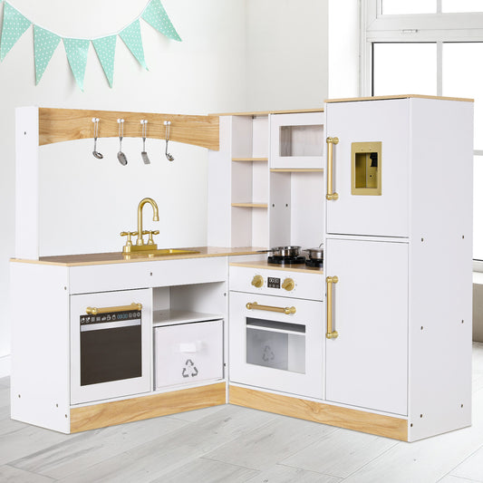 pirecart Large Corner Play Kitchen for Kids, Wooden Pretend Toy Kitchen Toodler Cooking Playset with Light & Sound
