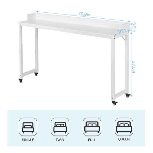 pirecart Mobile Overbed Table Computer Desk Laptop Cart for Queen/Full Size Bed