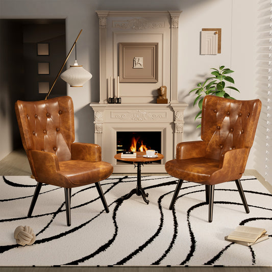 Pirecart Leather Accent Chair, Comfy Upholstered Armchair with Metal Legs, High Backrest Living Room Chair Mid Century Modern for Living Room, Vanity, Bedroom, Brown