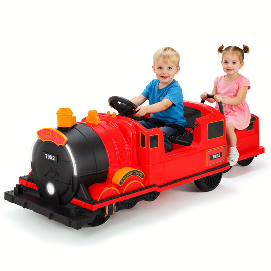 Ride on Train Trackless for Kids, Toddler Ride on Toy Train with Under Seat Storage, 12V 4 Wheeler Electric Car with Whistle & Music for Age 3+ Boys and Girls Gift