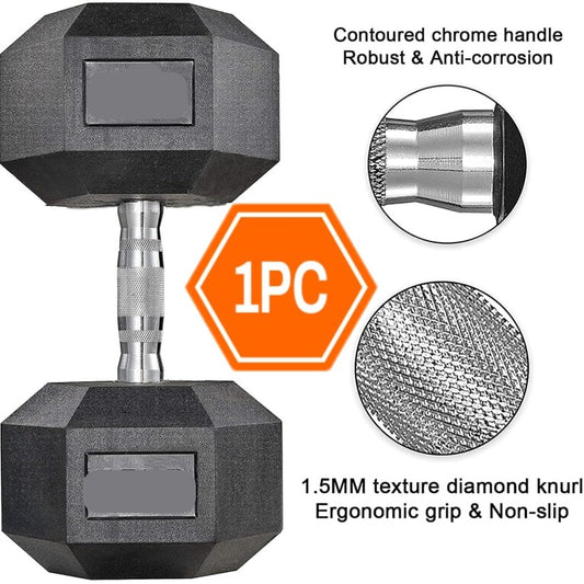 PIRECAT Rubber Grip Dumbbells Rubber Coated Cast Iron, with Anti-Slip Hex Black Dumbbell, Free Weights Dumbbell, 60lb/ 65lb/ 70lb/ 75lb dumbbell Single