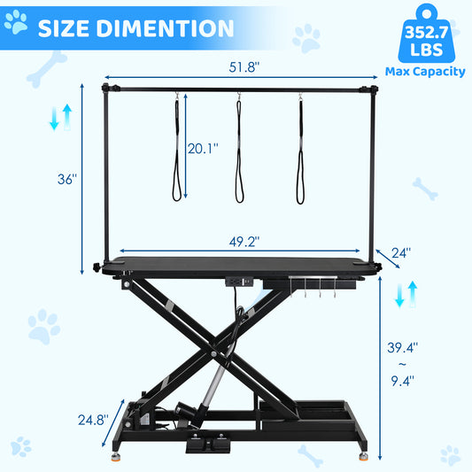 pirecart 49" Electric Dog Grooming Table, Professional Heavy Duty Pet Hydraulic Grooming Table w/Overhead Arm, 3 Noose