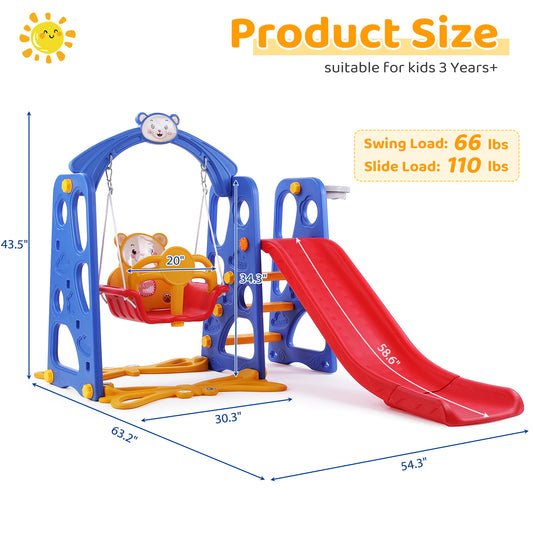pirecart 4 in 1 Slide and Swing Set, Indoor Outdoor Toddler Climber Slide Playset