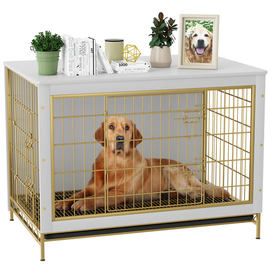 pirecart 39/44 inch Furniture Style Dog Crate with 2 Bowls, Large Wooden End Table Dog House