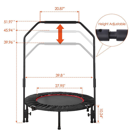 Pirecart 40" Foldable Mini Trampoline Fitness Rebounder with Handrail
