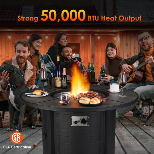 pirecart 42inch Gas Propane Fire Pit Table 50,000 BTU Round Gas Fire Table with Lid