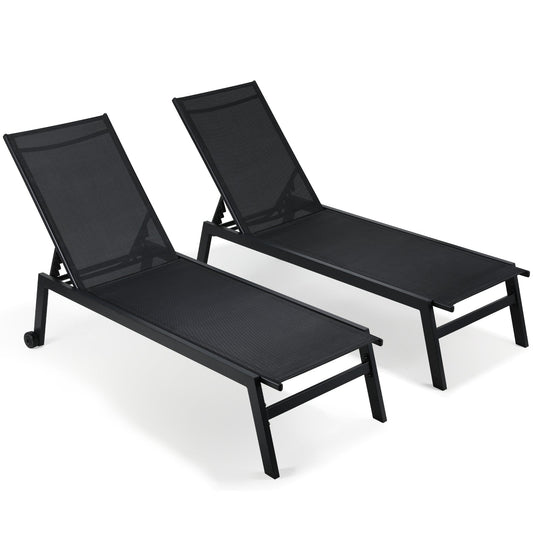 pirecart 4Pcs Patio Chaise Lounge Chair with Wheels, All-Weather Pool Lounger, Adjustable Sunbathing Pool Lounger