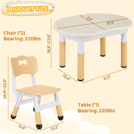pirecart Kids Table and 2 Chairs Set Height Adjustable, Kids Art Table with Graffiti Desktop