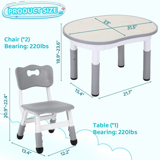 Pirecart Kids Table and 2 Chairs Set, Height Adjustable Children Multi Activity Table and Chair Set, Non-Slip Legs & Graffiti Desktop, for Drawing, Reading, Studying