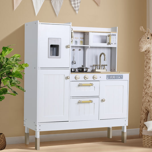 pirecart kids Play Kitchen Wooden Cooking Playset w/Realistic Light & Sound