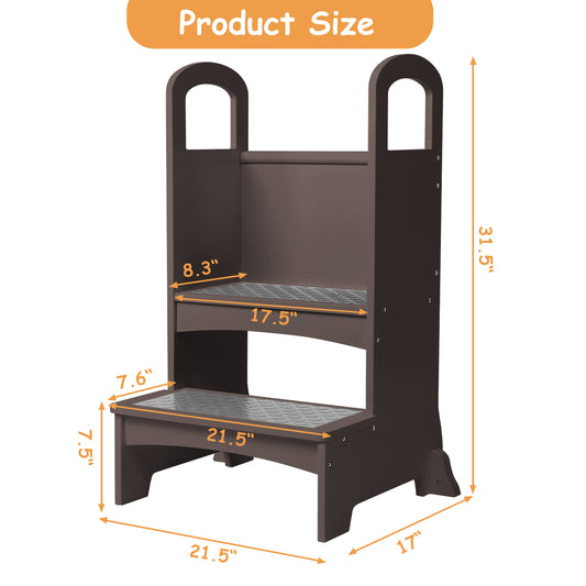 pirecart Kids Kitchen Step Stool,Wooden Standing Stool for Toddler,Two-Step Stool Standing Platform with Support Handles and Non-Slip Mat,Learning Tower for Kitchen,Bedroom Espresso