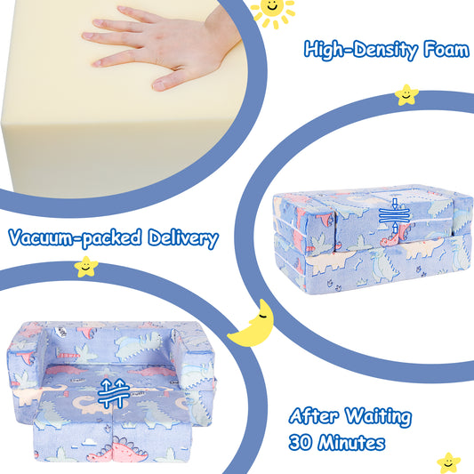 pirecart Kids Sofa Couch, Modular Toddler Couch with Glowing Dinosaur, 2 Ottomans and 1 Side Pocket