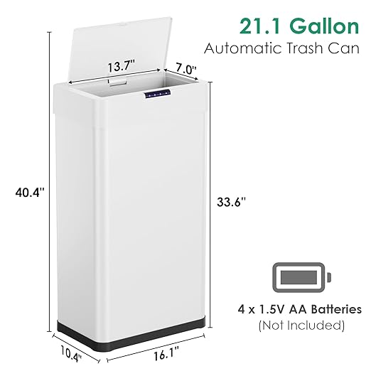 Pirecart 13.2/16/18.5/21 gal Automatic Trash Can,Sensor Motion Stainless Steel Garbage Bin
