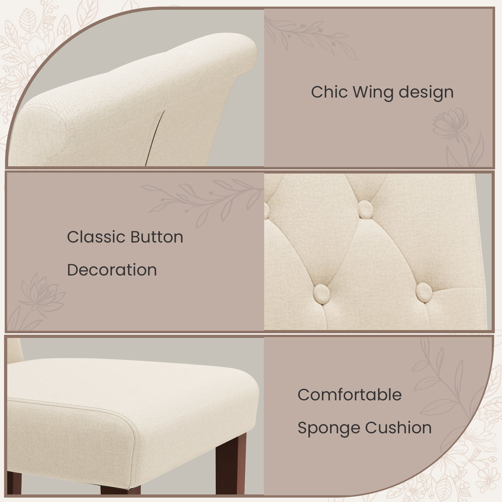 Pirecart 2 PCS Dining Chairs, Kitchen Chairs with Solid Wood Legs, Button-Tufted Parsons Design Upholstered Fabric Chairs