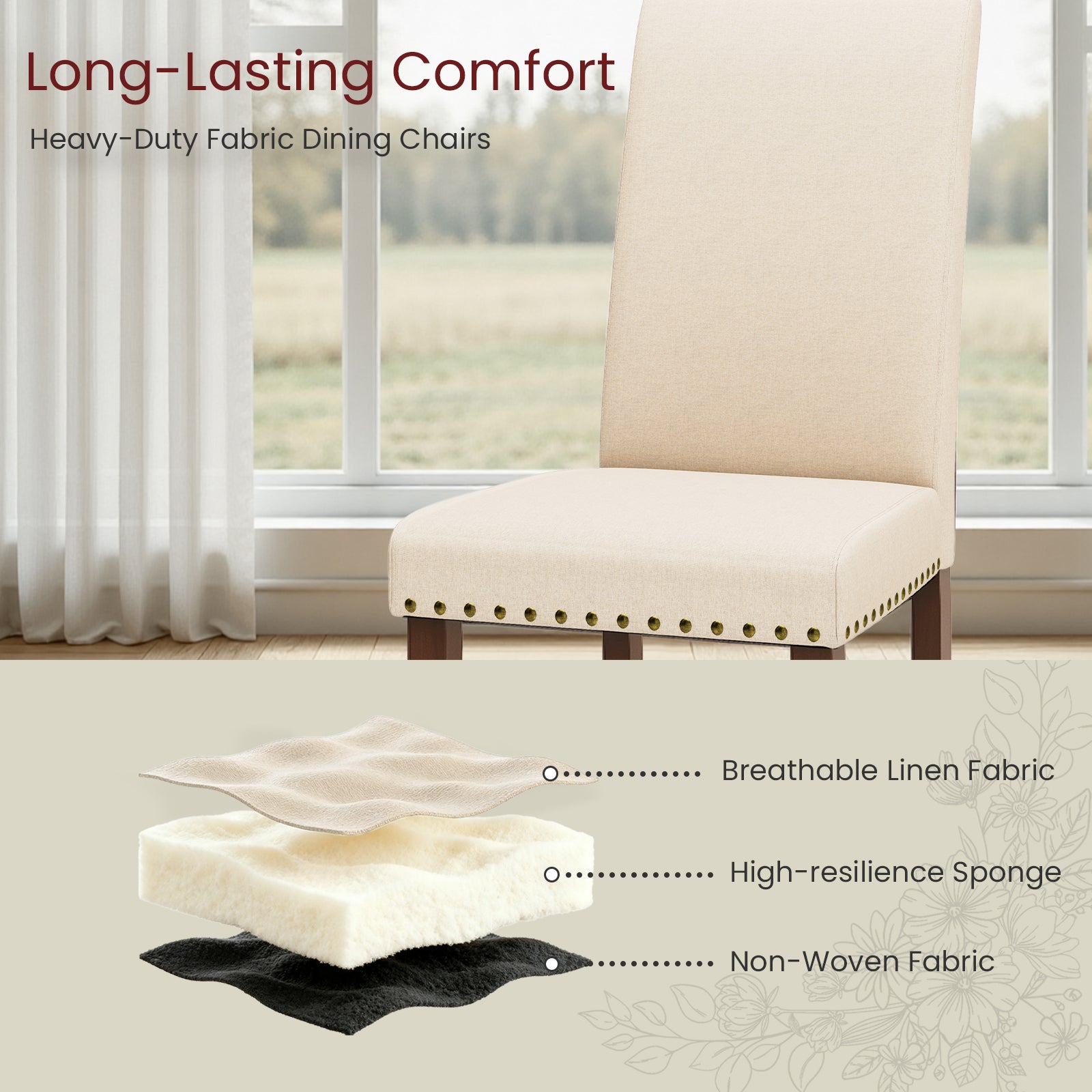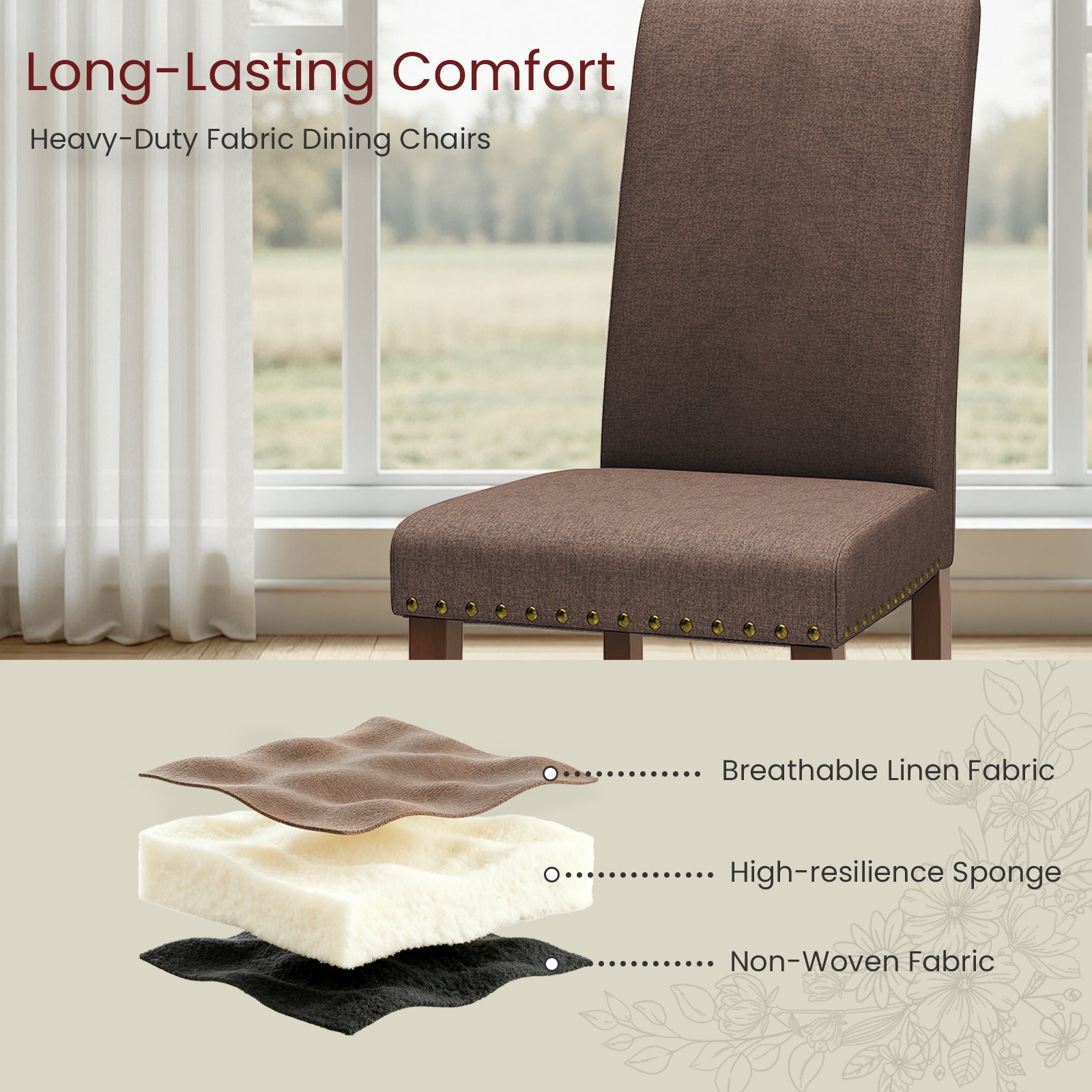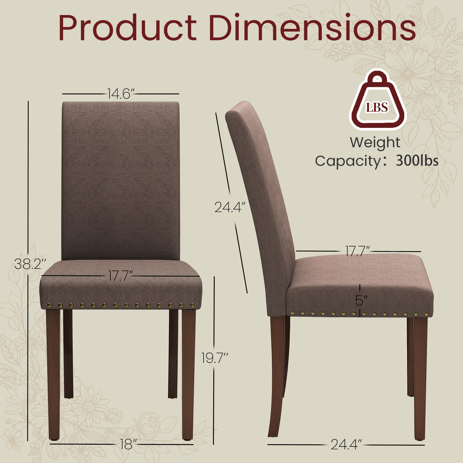 - 【Elegant Modern Design】Featuring sleek bronze nail head trim, these dining chairs combine refined elegance with clean lines. The timeless Parsons silhouette and rich linen upholstery effortlessly complement any decoration—from contemporary to classic, creating a warm, inviting atmosphere in your dining room or living space.