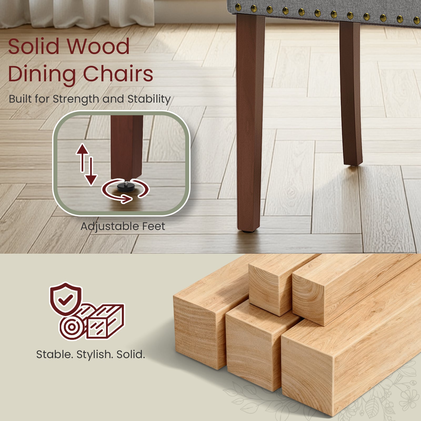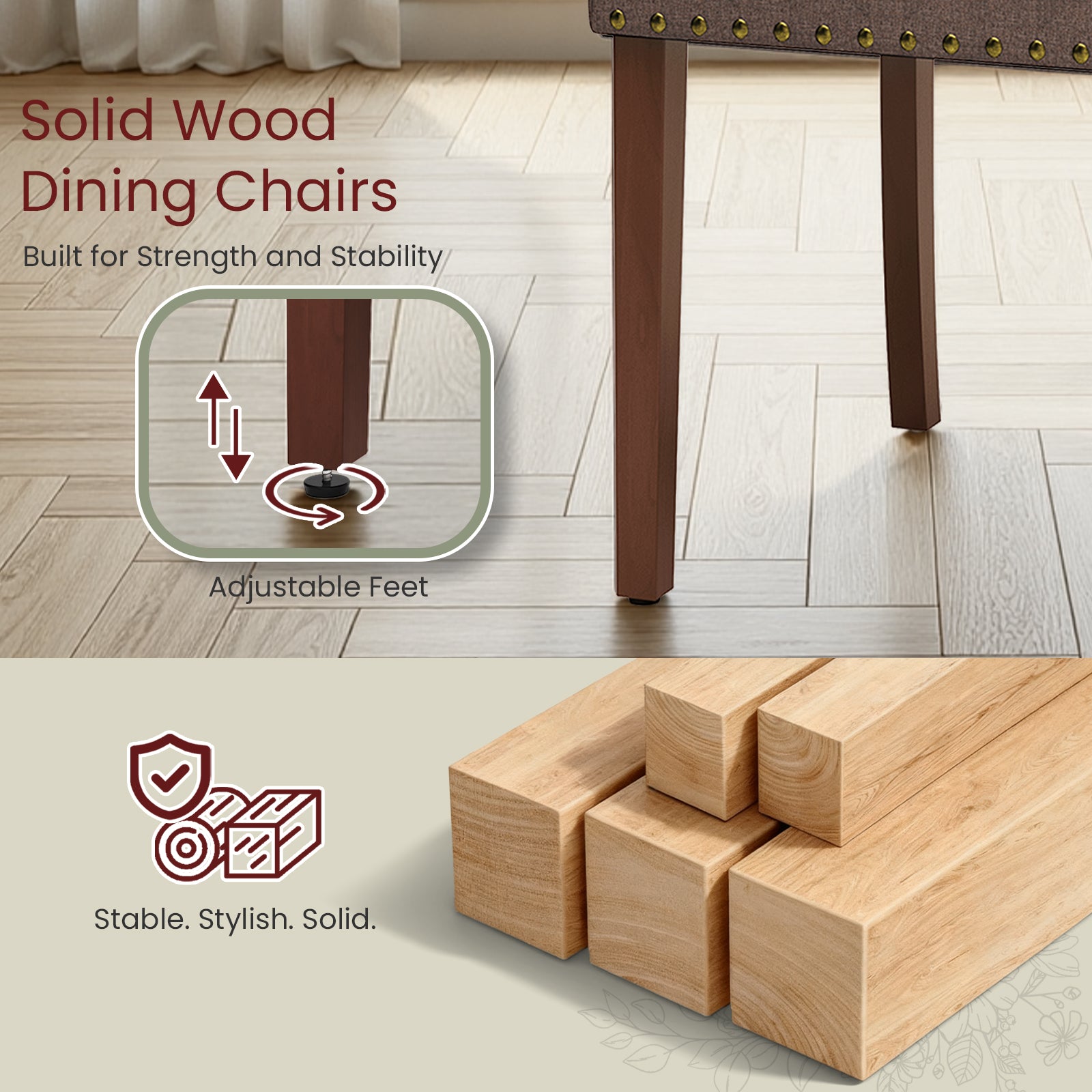 - 【Sturdy & Durable Construction】Built with solid rubber wood legs in a elegant walnut finish, these chairs ensure exceptional stability and a weight capacity of up to 300 lbs. Reinforced with anti-slip or adjustable rubber feet, they protect your floors while maintaining balance on uneven surfaces.