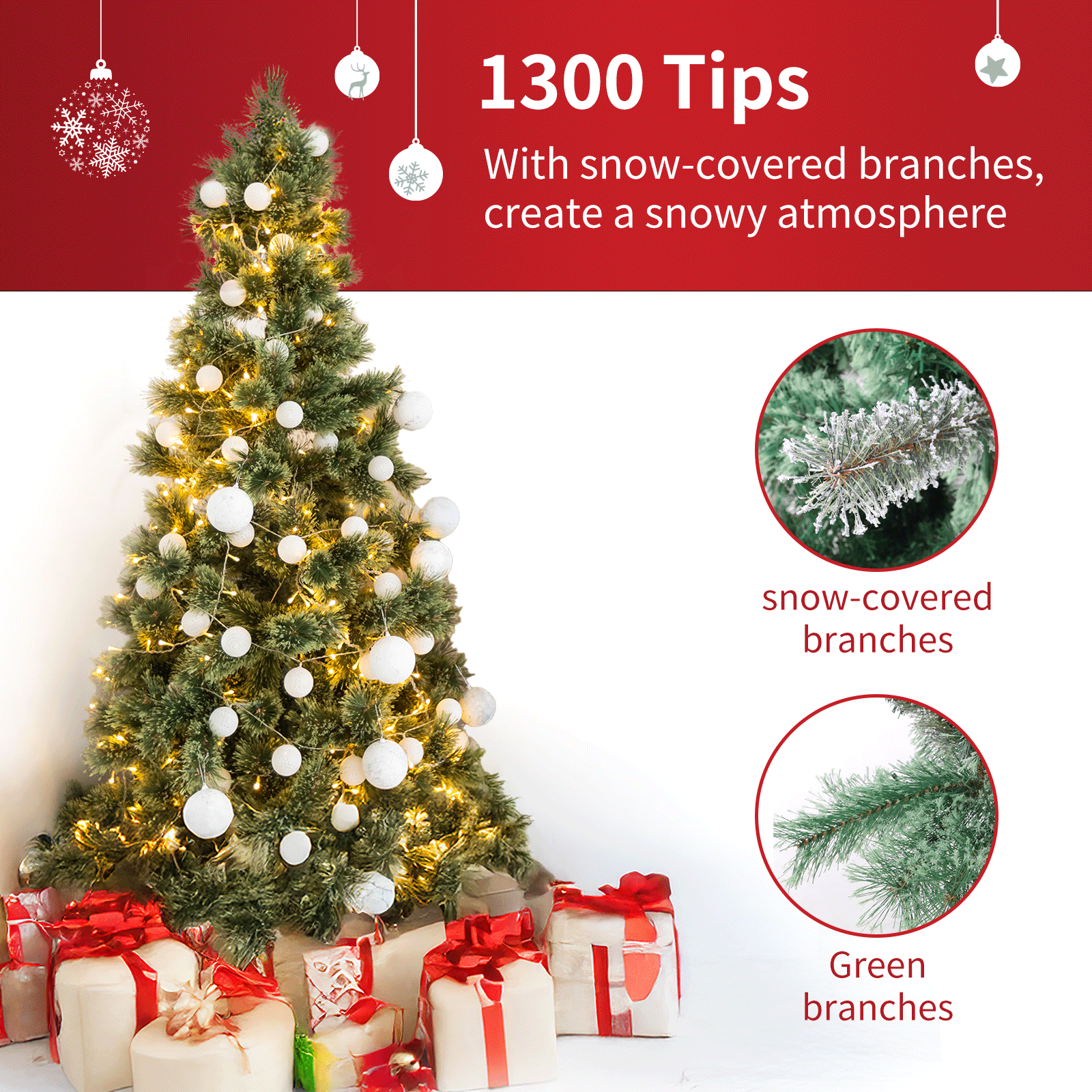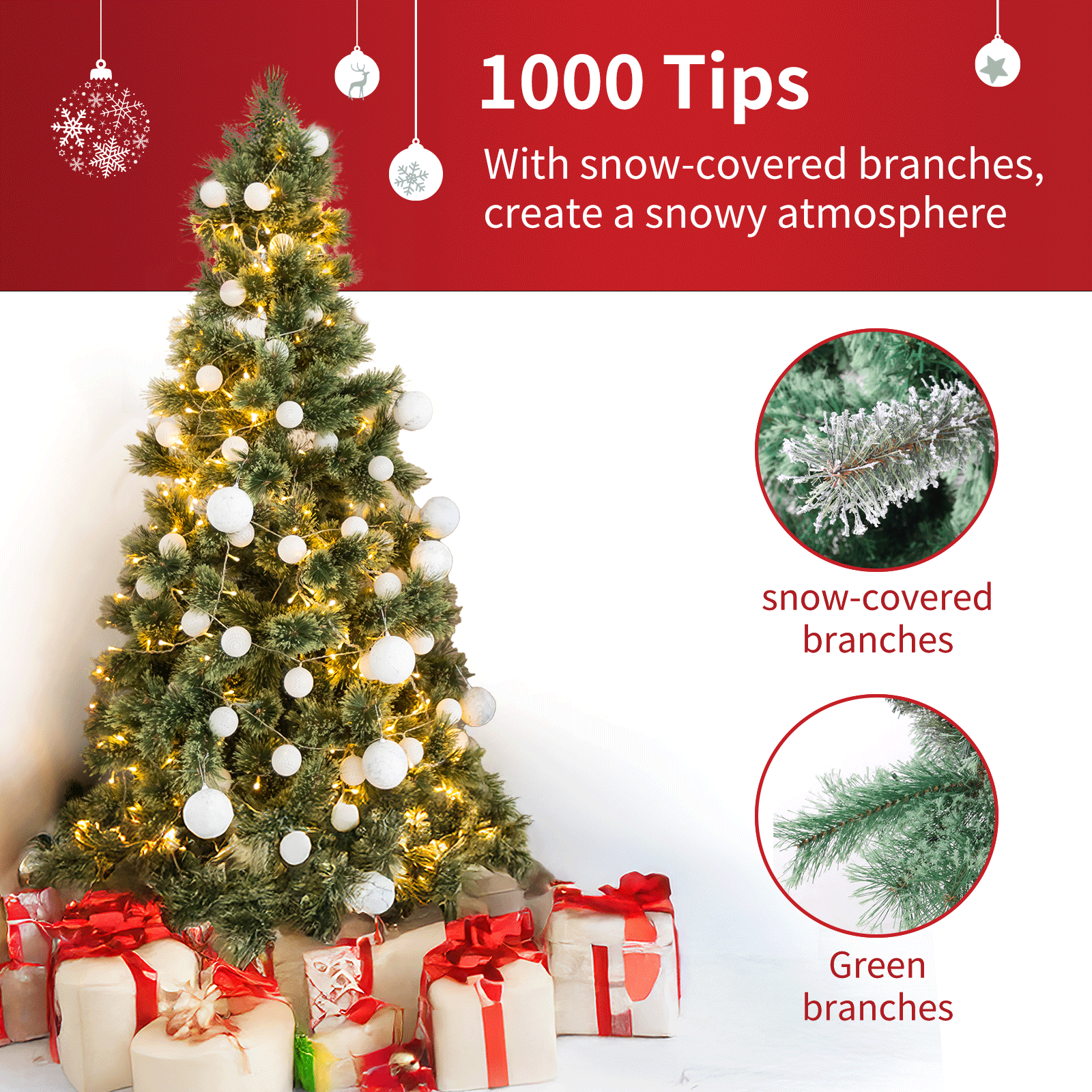 NATURALLY LUSH APPEARANCE: Snow flocked Christmas tree mixes 1300 individual PVC branch tips, snowy flocked branches (approx. diameter: 2.7 inches, length: 5.9 inches) to give the tree the look of being naturally covered with winter snow and will instantly mimic the feel of a traditional Christmas tree.