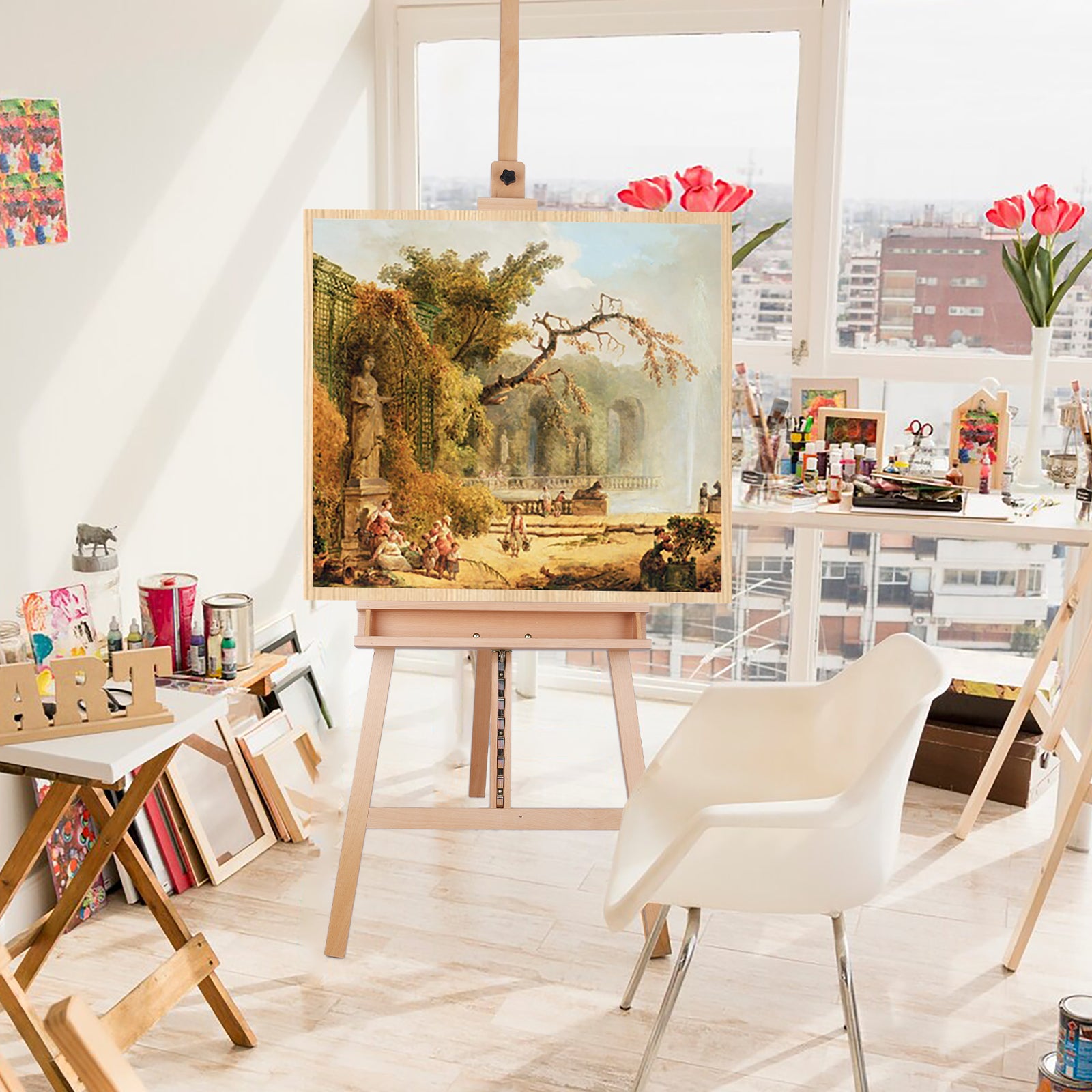 【Satisfy Multiple Demands】With this artist easel wood, With this artist easel, you can create different types of paintings such as watercolors, sketches, and oil paintings on it.