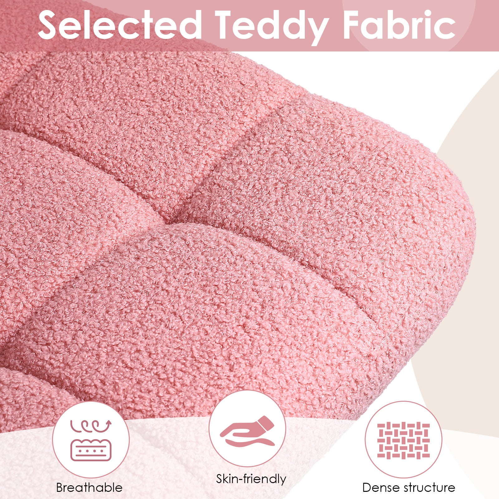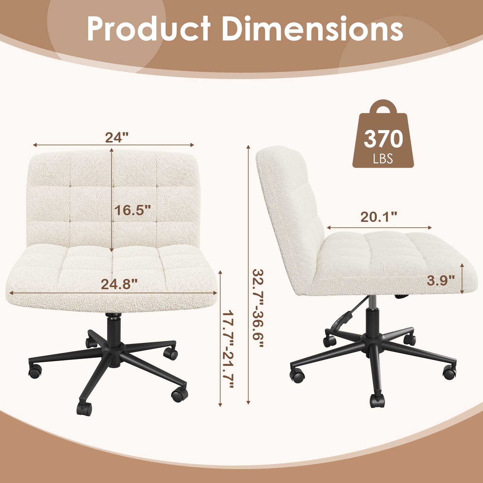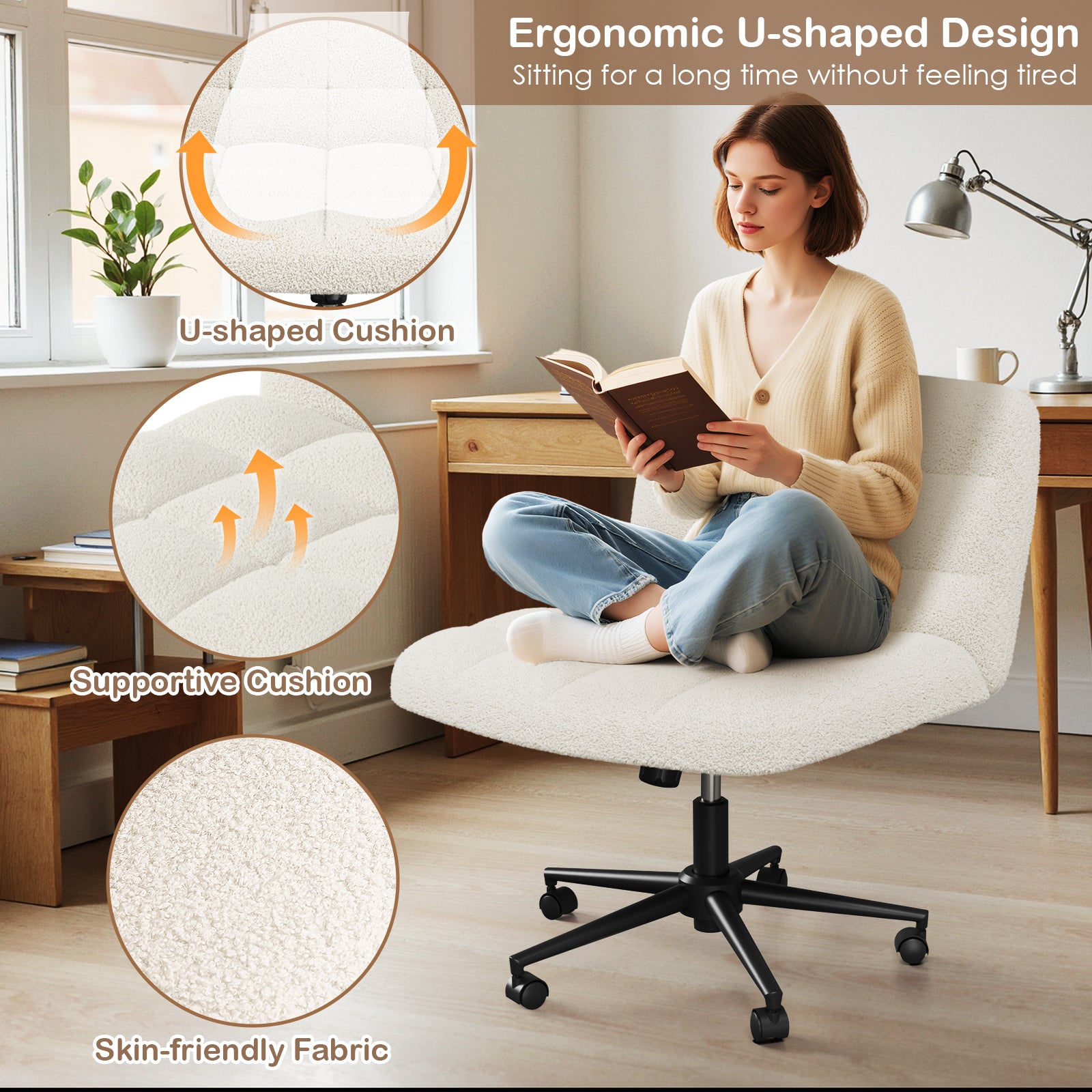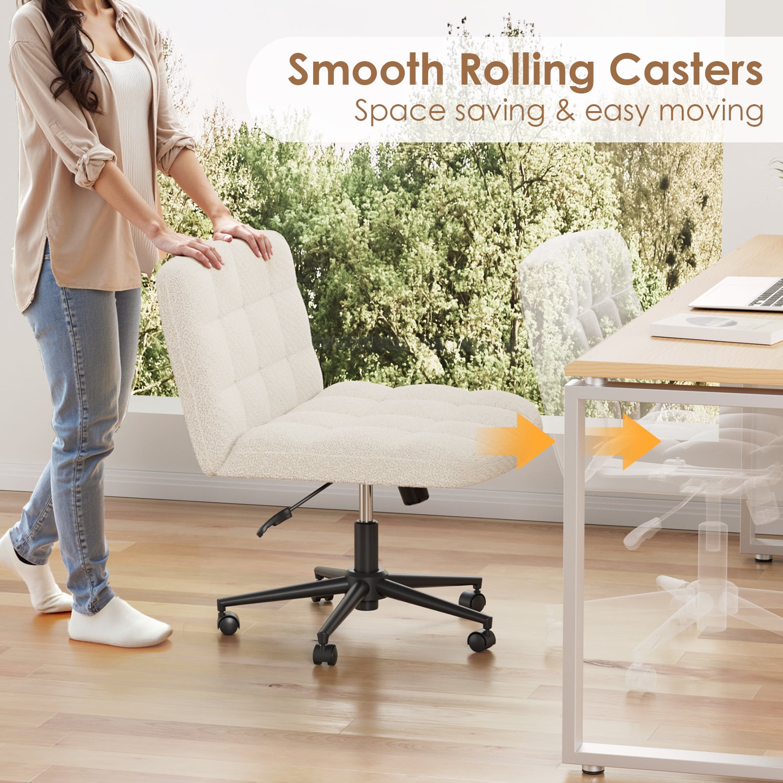 Pirecart Criss Cross Chair with Wheels, Armless Swivel Vanity Chair, Height Adjustable Cross Legged Office Chair with Comfy Wide Cushion for Desk, Vanity, Bedroom, Sherpa Fleece