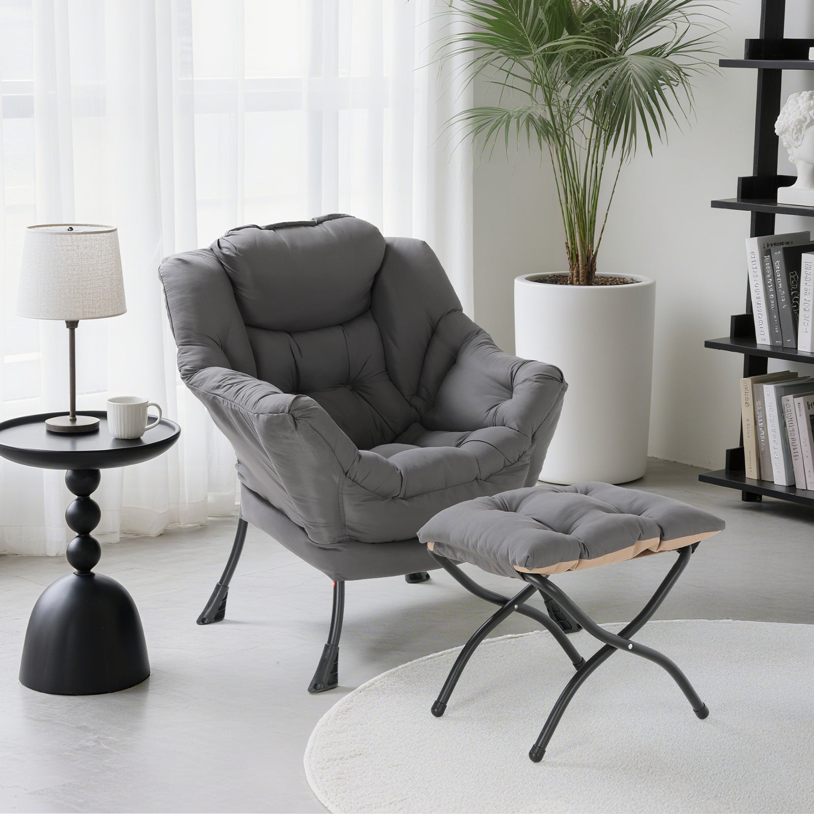 Pirecart Fabric Lazy Chair with Foldable Ottoman and Side Pocket, Large Comfy Chair with Footstool Set Reading Chair Leisure Sofa Chair for Bedroom, Living Room
