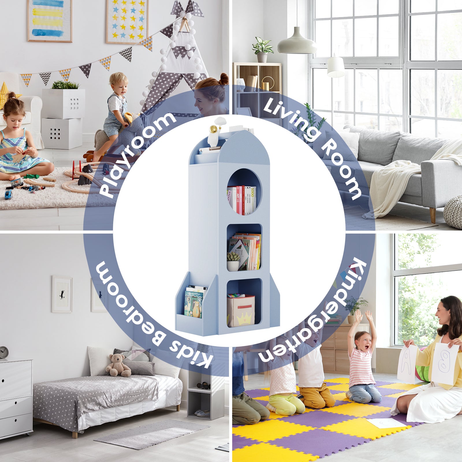 Pirecart Kids Bookshelf 3-Tier Wooden Kids Bookcase with Toy Storage for Bedroom, Playroom, Nursery