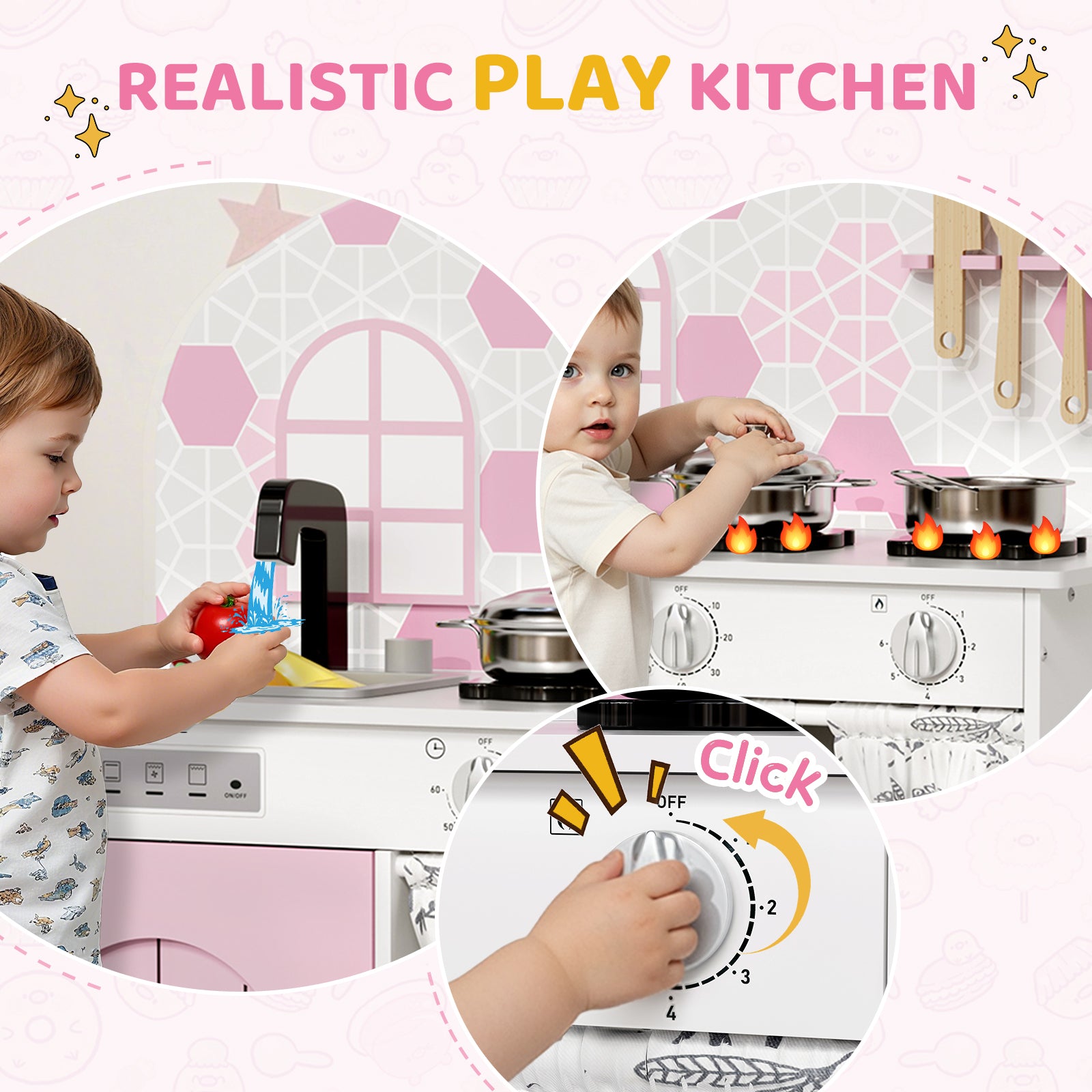 Pirecart Kids Play Kitchen, Toddler Wooden Kitchen Playset with Cooking Accessories and Clicking Knobs, Educational Chef Pretend Play Set for Ages 3+