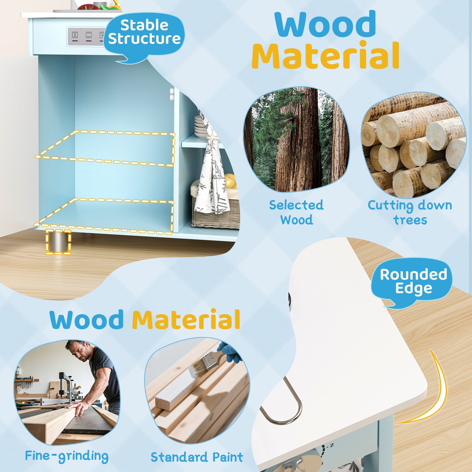- 【Certified Safe & Durable】Kids play kitchen is crafted from ASTM & CPSIA-certified materials. Designed for total peace of mind, its sturdy build features gentle rounded corners and is complemented by wooden accessories, offering a durable and secure space for little chefs to explore their culinary creativity