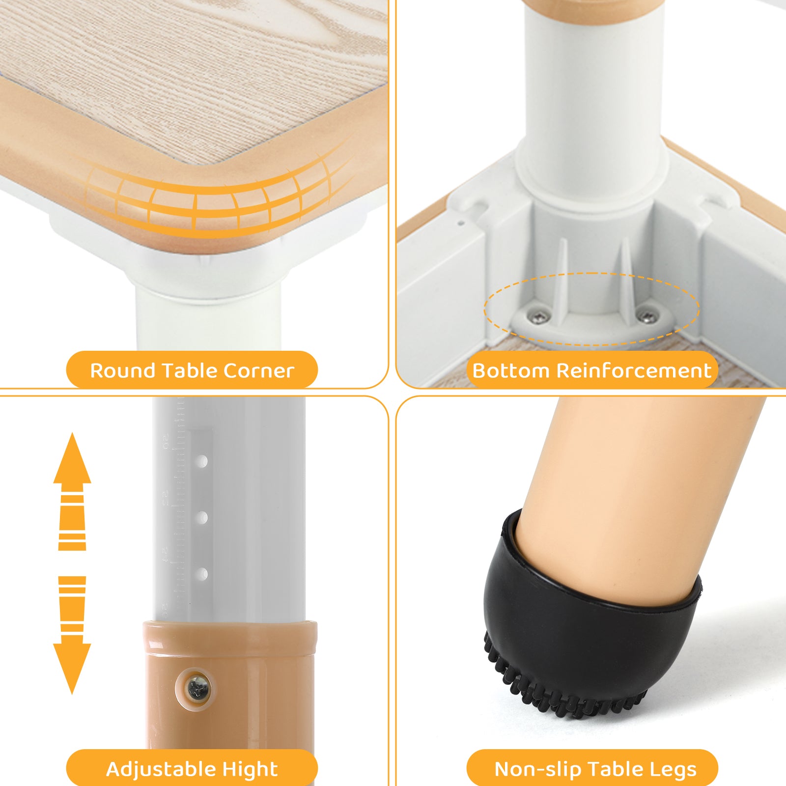 - 【SAFE & STABLE】Constructed from HDPE plastic with CPC certified environmental material, ensuring durability and safety. Table has a maximum weight capacity of 300 lbs, chair has a maximum weight capacity of 180 lbs.