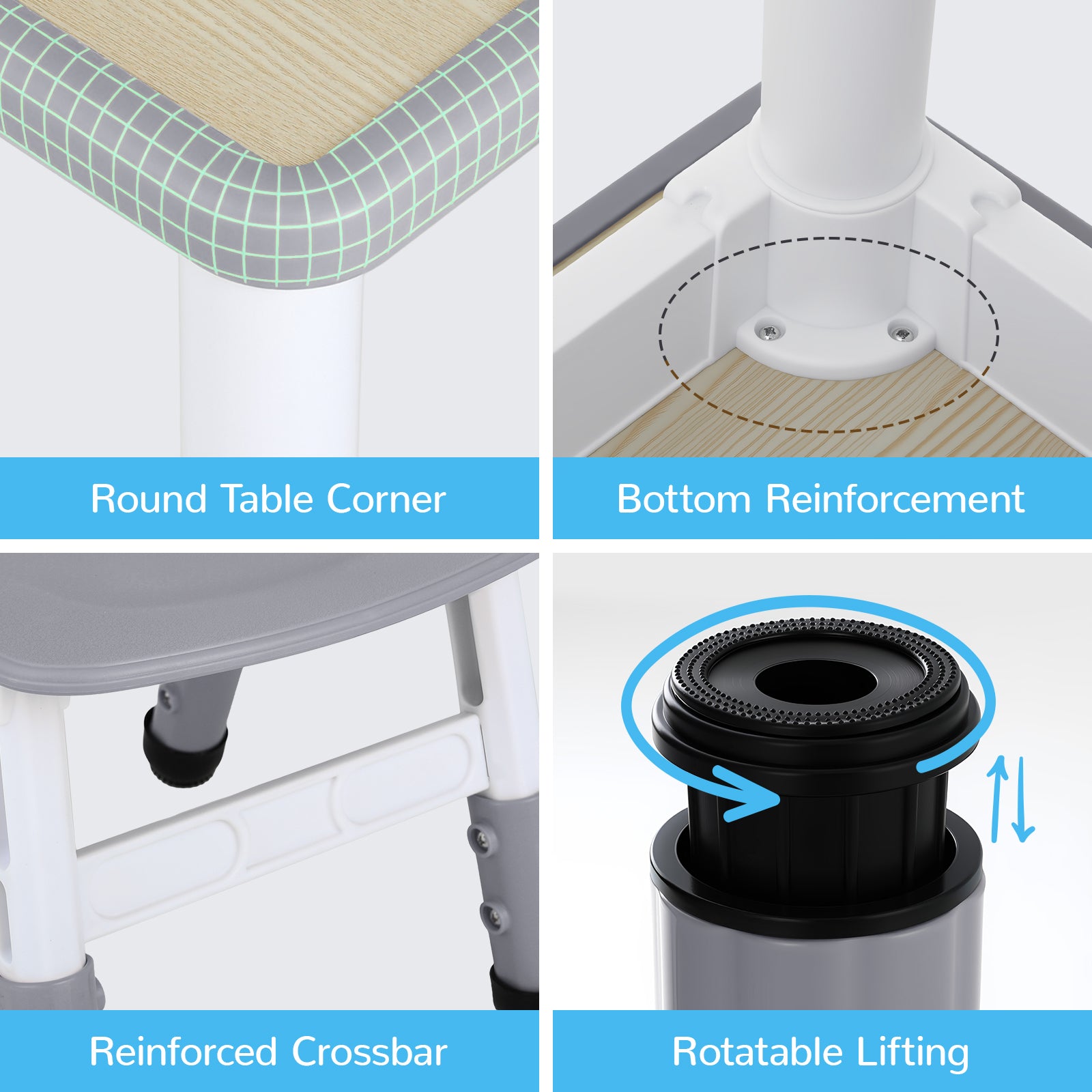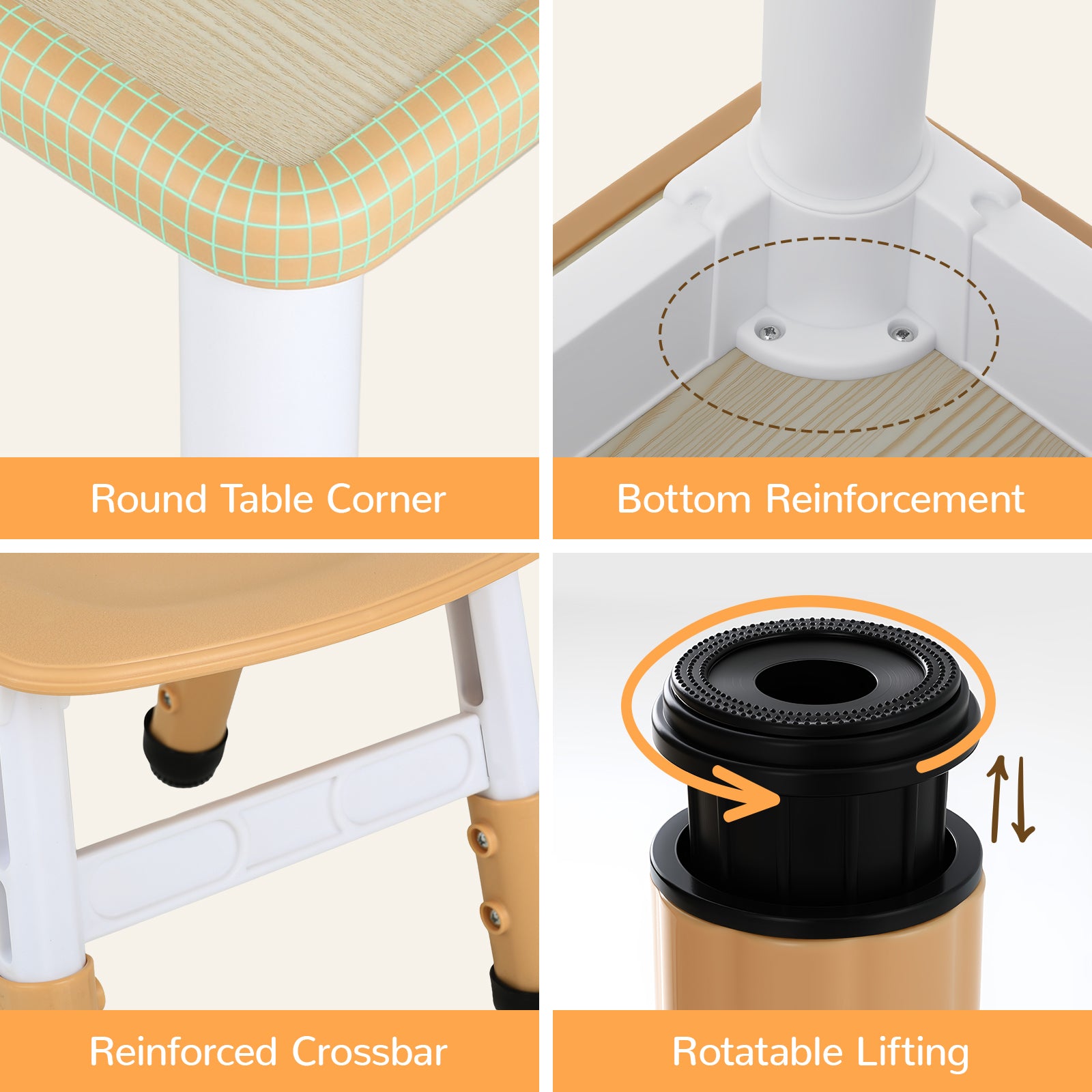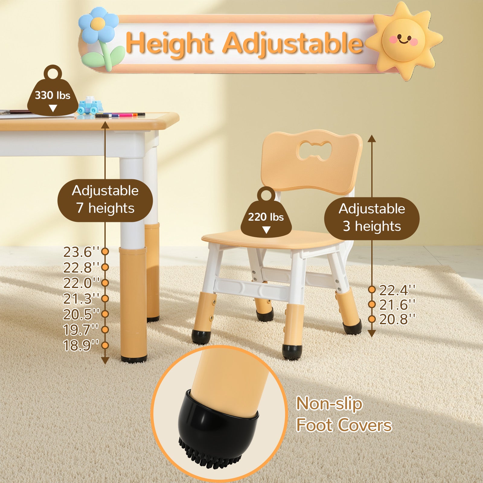 - 【Height Adjustable Table & Chairs】: Toddler table and chairs set offers 7 adjustable table heights (18.9″–23.6″) and 3 chair levels (20.8″–22.4″). Kids table provides a large 31.5″ x 23.6″ surface. Rounded edges and secure construction ensure a safe space for learning and play