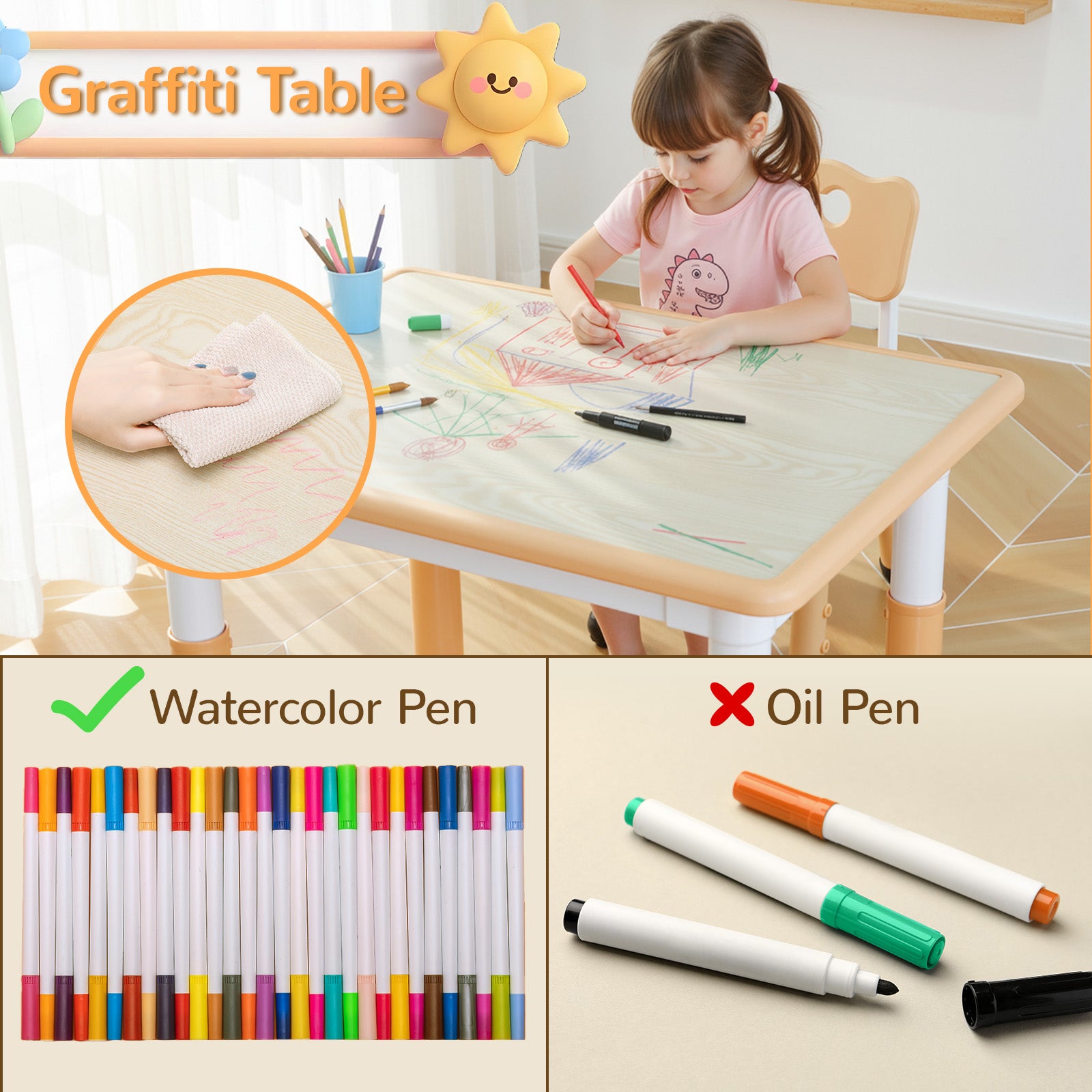 Pirecart Kids Table and 2 Chairs Set, Height Adjustable Children Multi Activity Table and Chair Set, Non-Slip Legs & Graffiti Desktop, for Drawing, Reading, Studying