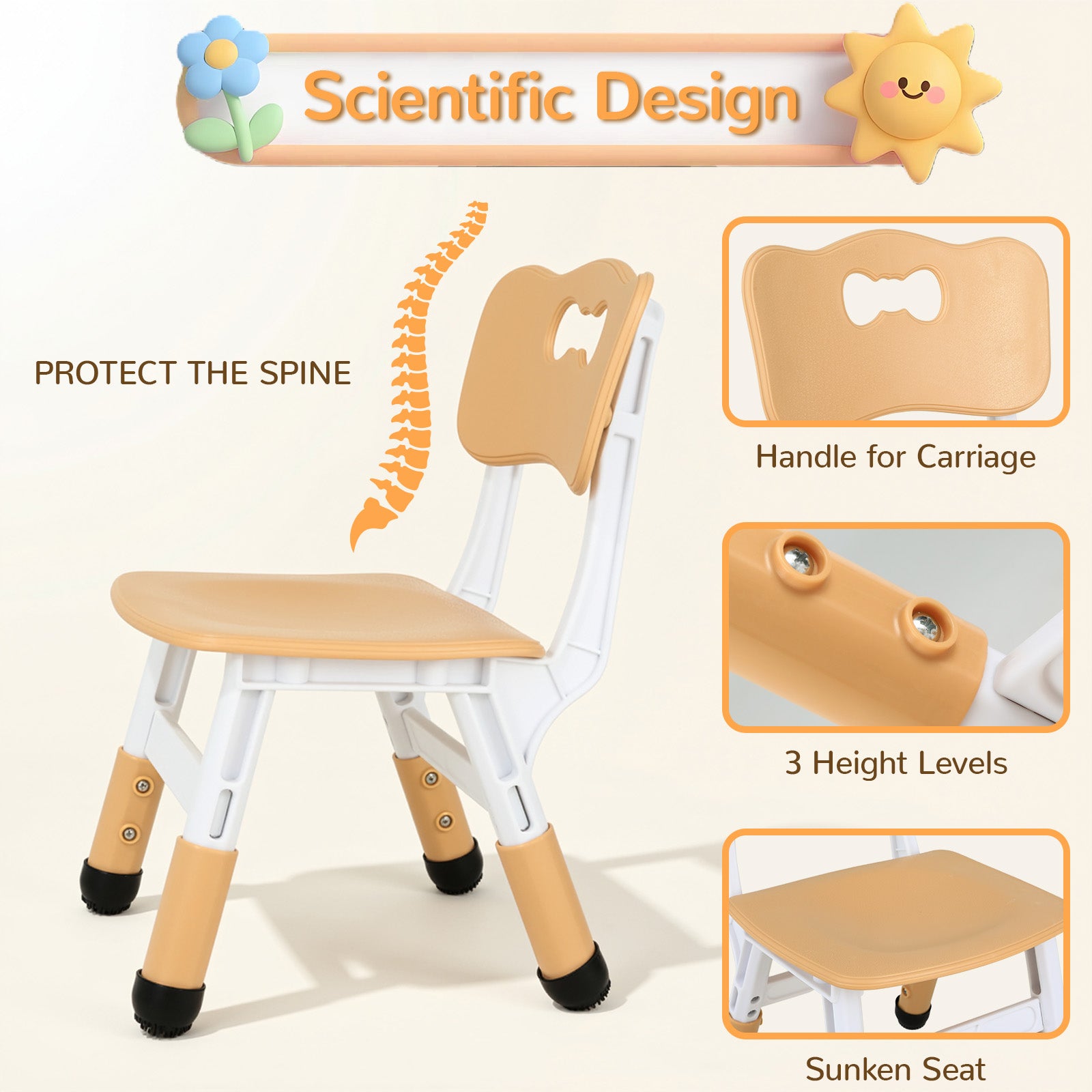 - 【Ergonomically Designed Desk & Seat】: Crafted with ergonomics and child development in mind, kids table and chair set promotes sound posture. Sunken seat and wraparound backrest support proper spinal alignment and prevent slouching. Easy-grip bow handles allow children to move their chairs comfortably.