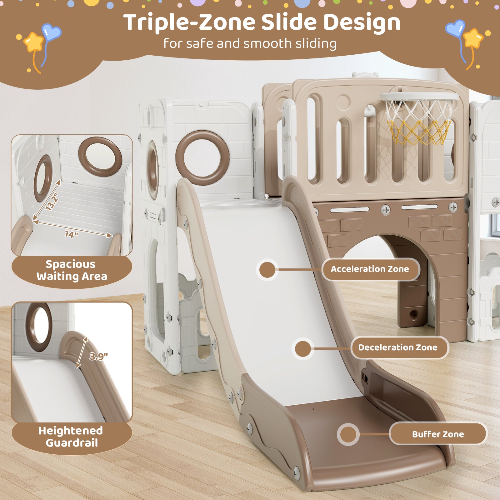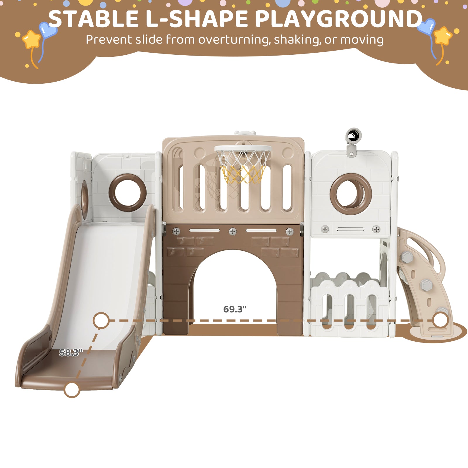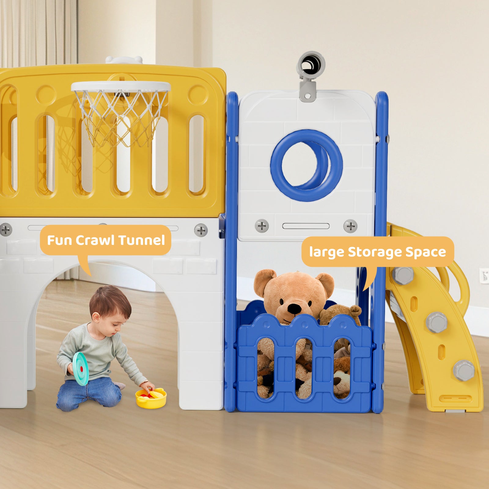 Pirecart Large Toddler Slide, Indoor Outdoor Kids Climber Playset with Basketball Hoop, Storage Space, Tunnel for Boys and Girls