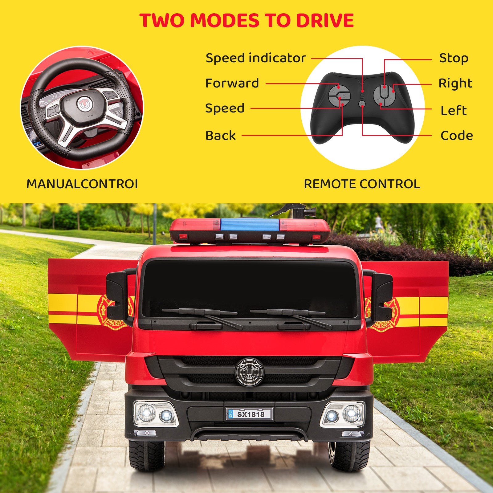 pirecart Ride On Fire Truck 12 Volt Battery Powered Fire Car Toy with Remote Control