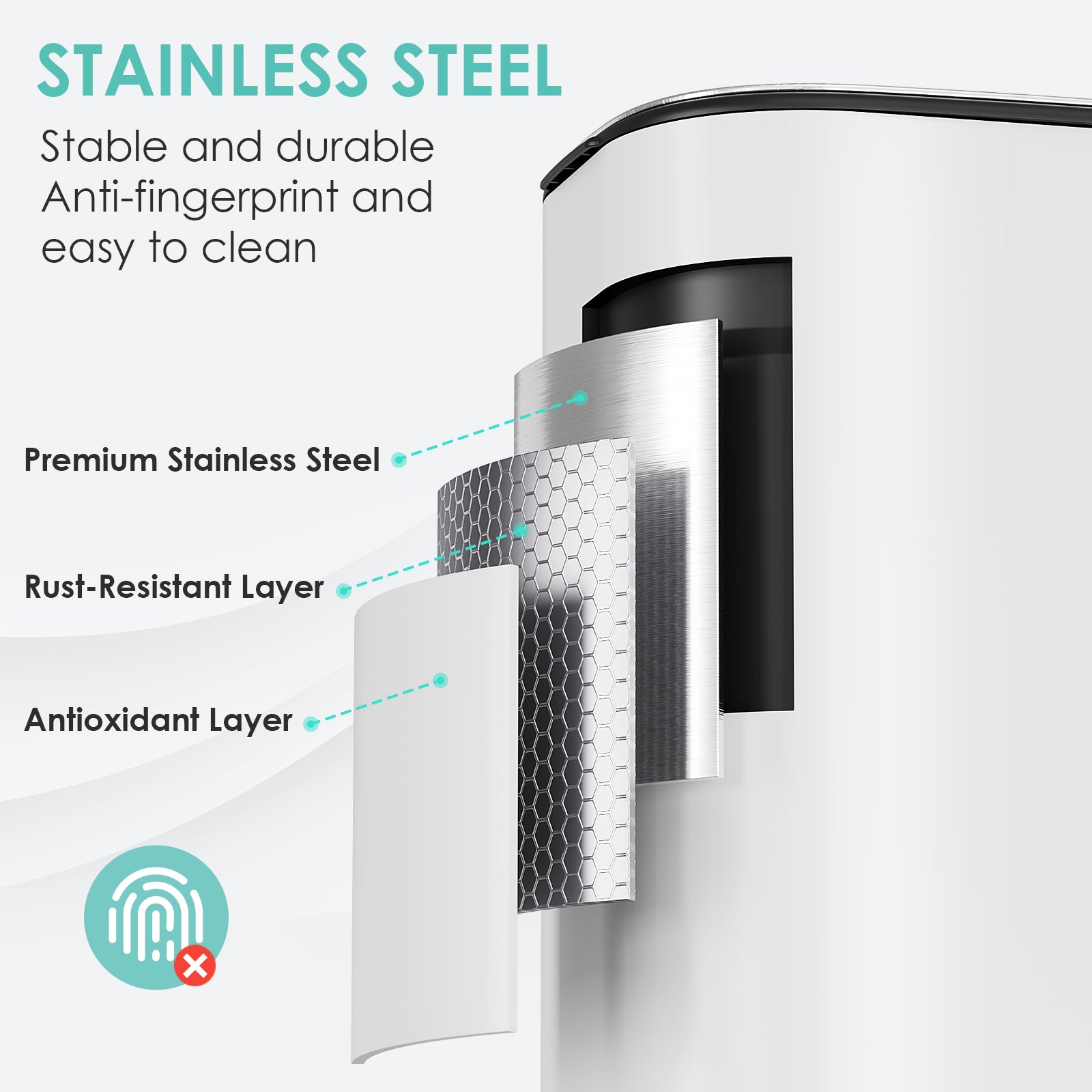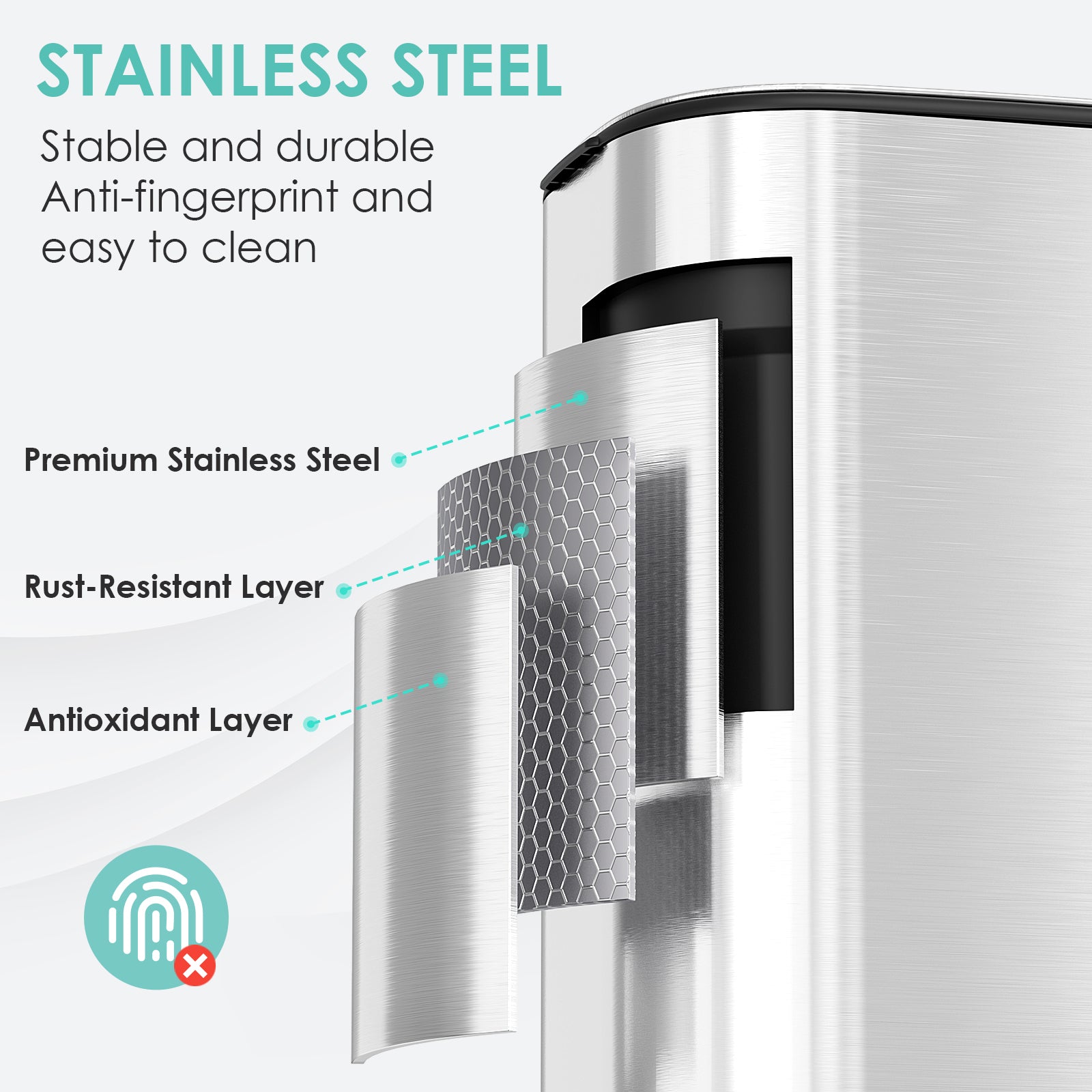 - 【Durable Stainless Steel Material】Trash can is made of stainless steel, resulting in minimal fingerprint residue. The brushed finish gives it a refined appearance, and the smooth surface is easy to wipe clean, suitable for kitchens, bedrooms, and offices
